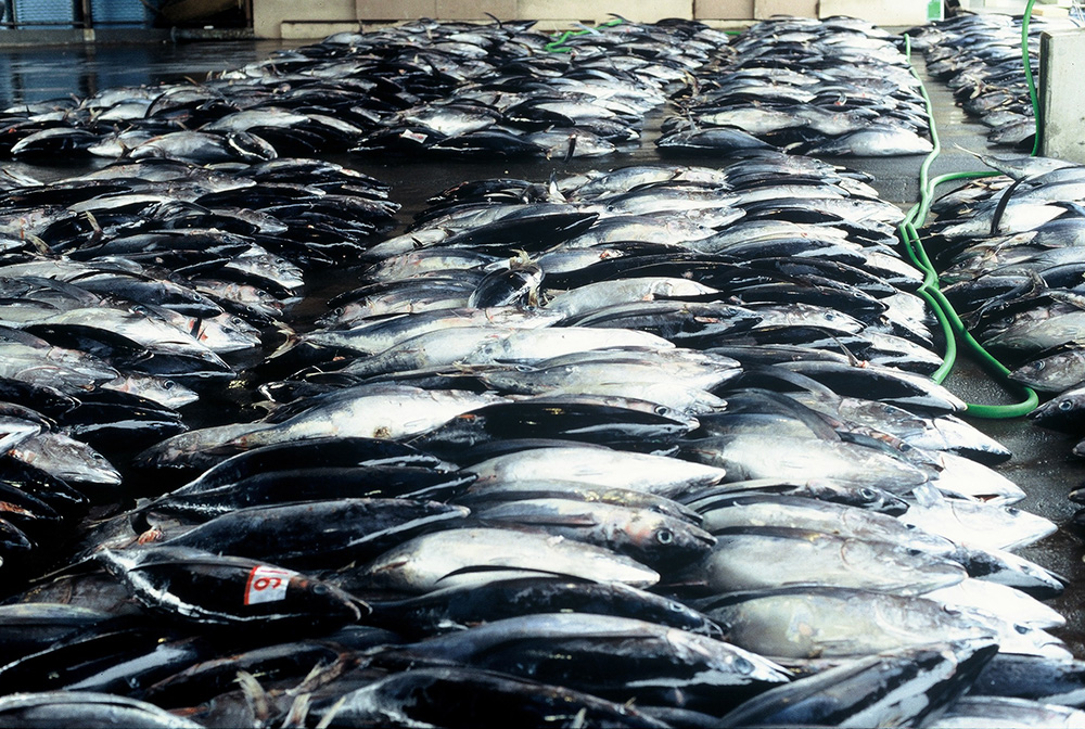昔はたくさん水揚げされた生のびんながまぐろ。