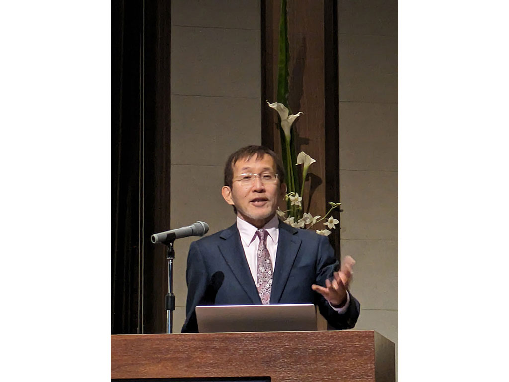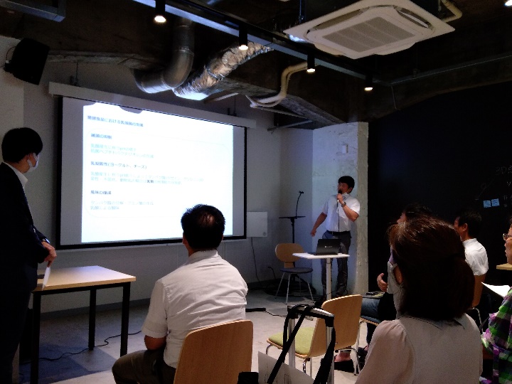 2人目は株式会社カネカ アグリバイオ&サプリメント研究所Green Planet研究グループリーダーの 佐藤様。「生分解性バイオポリマーの活用による持続的な循環型ポリマー産業の創生へ」をテーマにご講演いただきました。同社は、100%バイオマス由来で、海水中でも生分解される生分解性バイオポリマー Green Planetという素材を開発し、海洋マイクロプラスチック問題の解決をはじめ、環境保全に貢献しています。お茶パックのストローにも同社の技術が使われていることなど、実用例を交えて、お話いただきました。